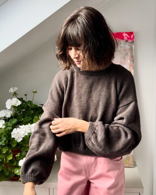 Our COLLARCOEURDI is the perfect cardigan if you love boxy, oversized knits with a collar.< It’s knitted top-down with 6mm needles and gets a high-quality fluffiness from the soft accompanying yarn.