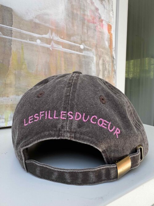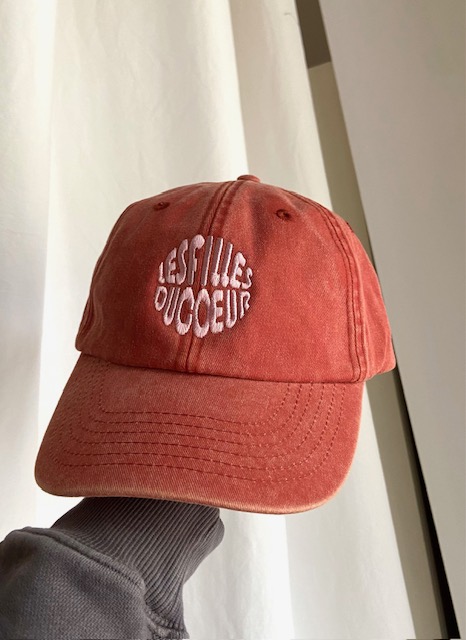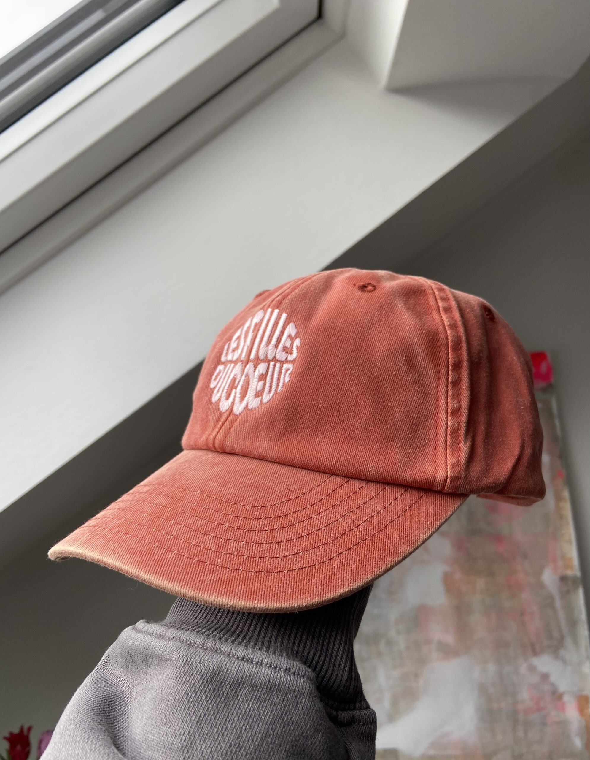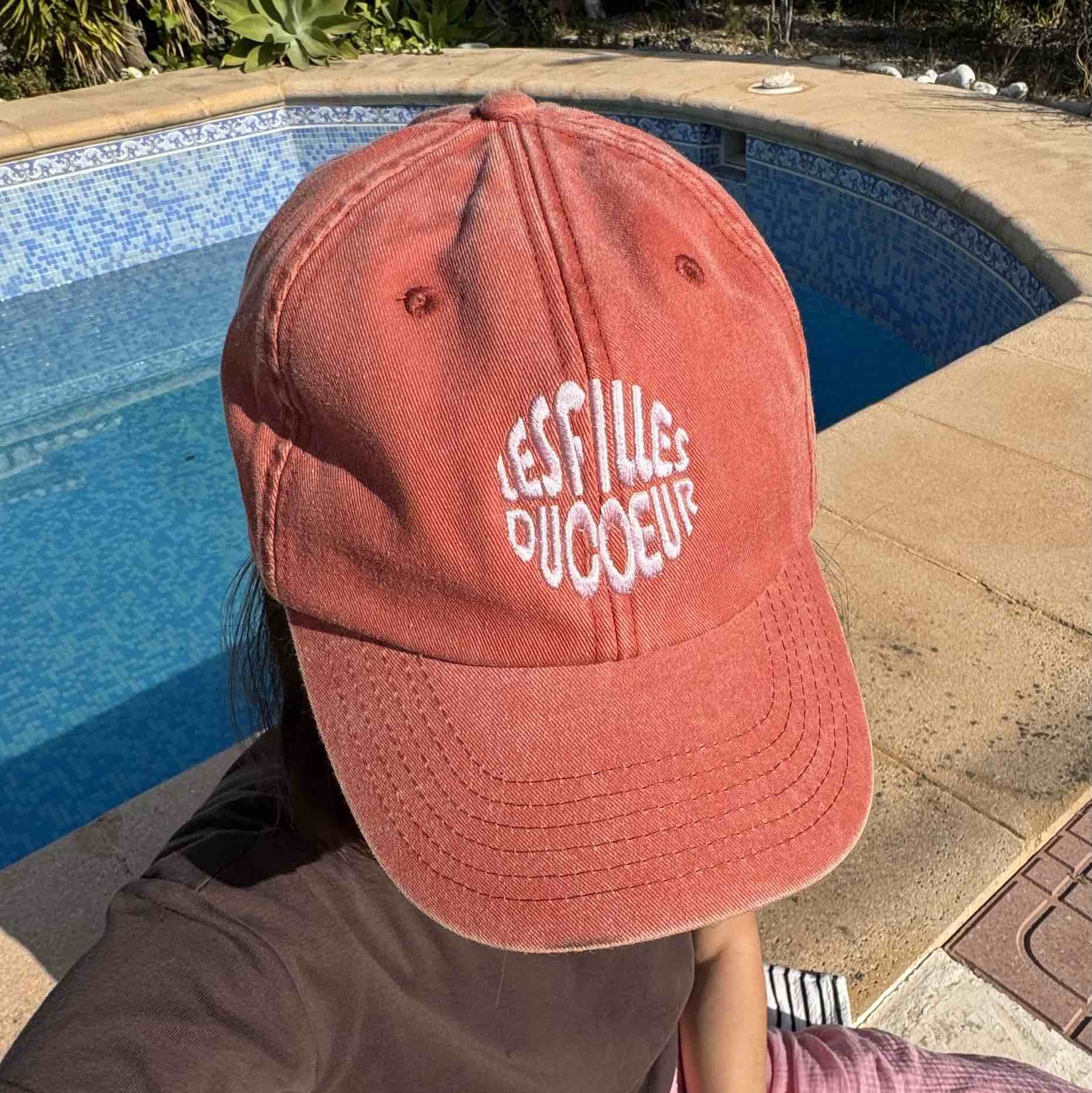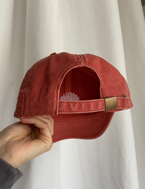 Bestickte Baumwollcap in der Farbe „Rostorange“ mit rosa Stick und größenverstellbarem Verschluss
