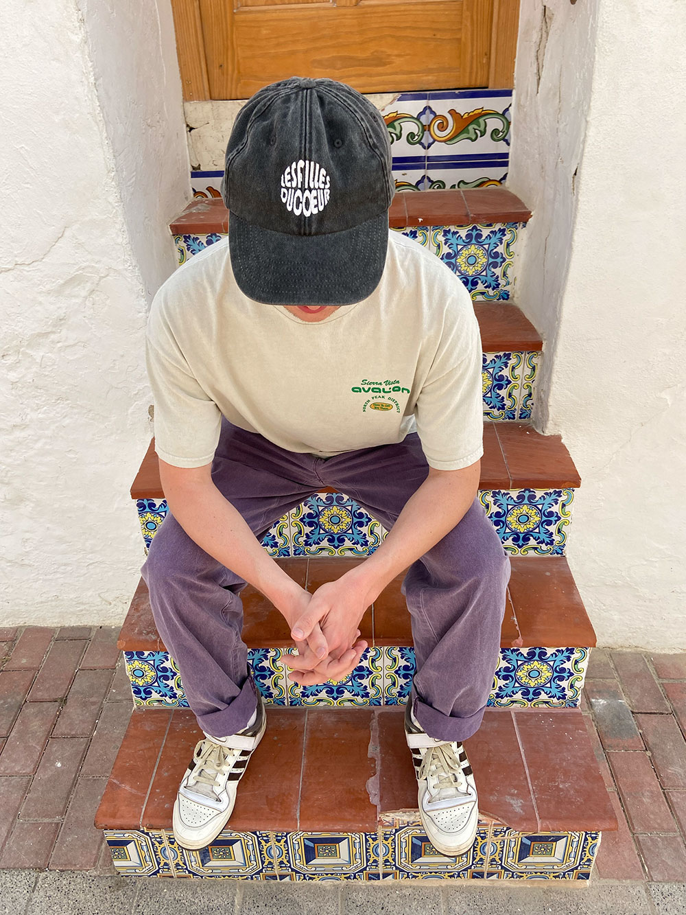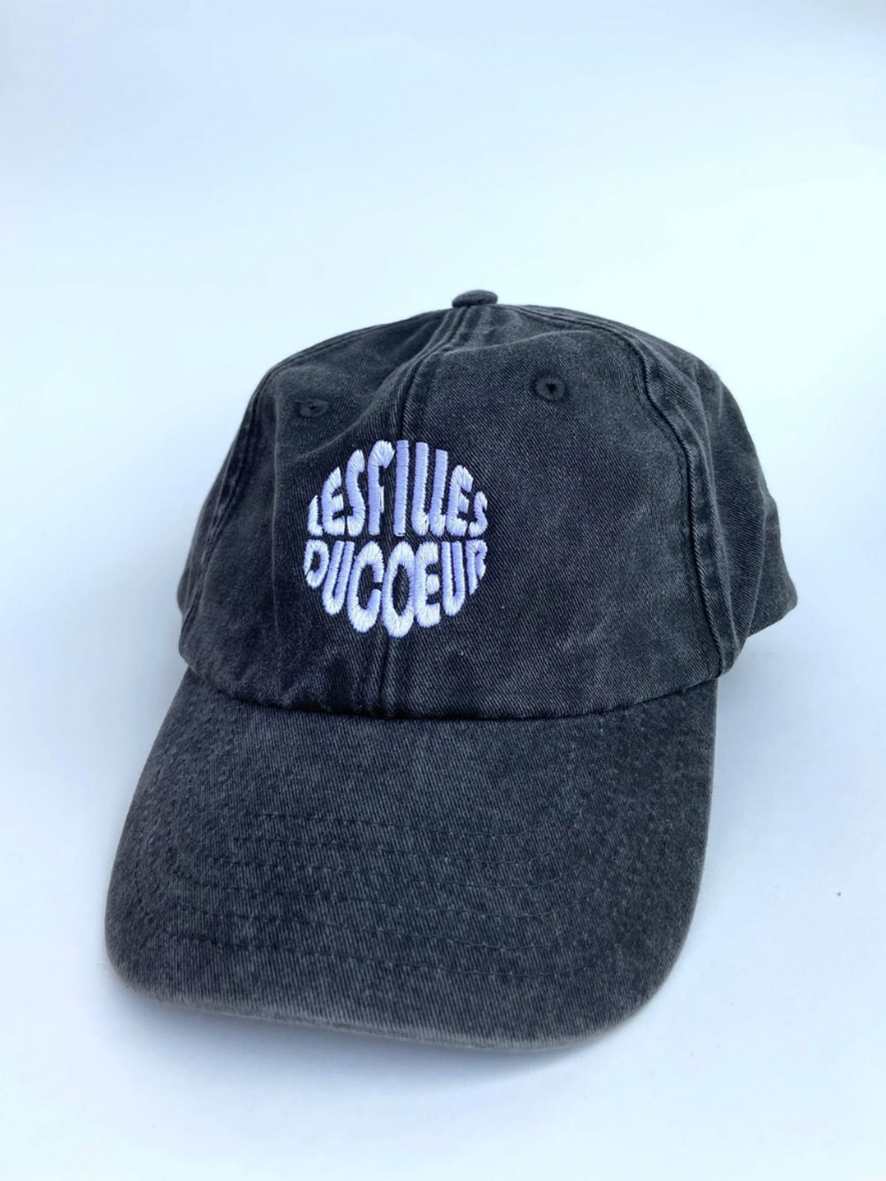 Bestickte Baumwollcap in schwarz mit weißem Stick und größenverstellbarem Verschluss