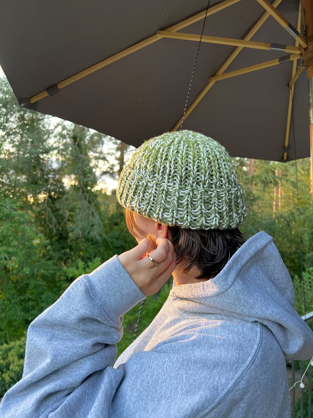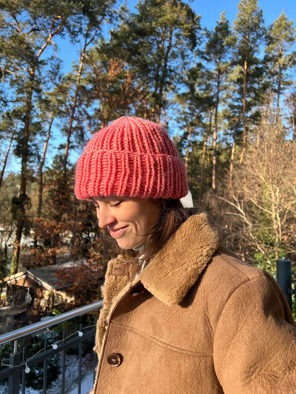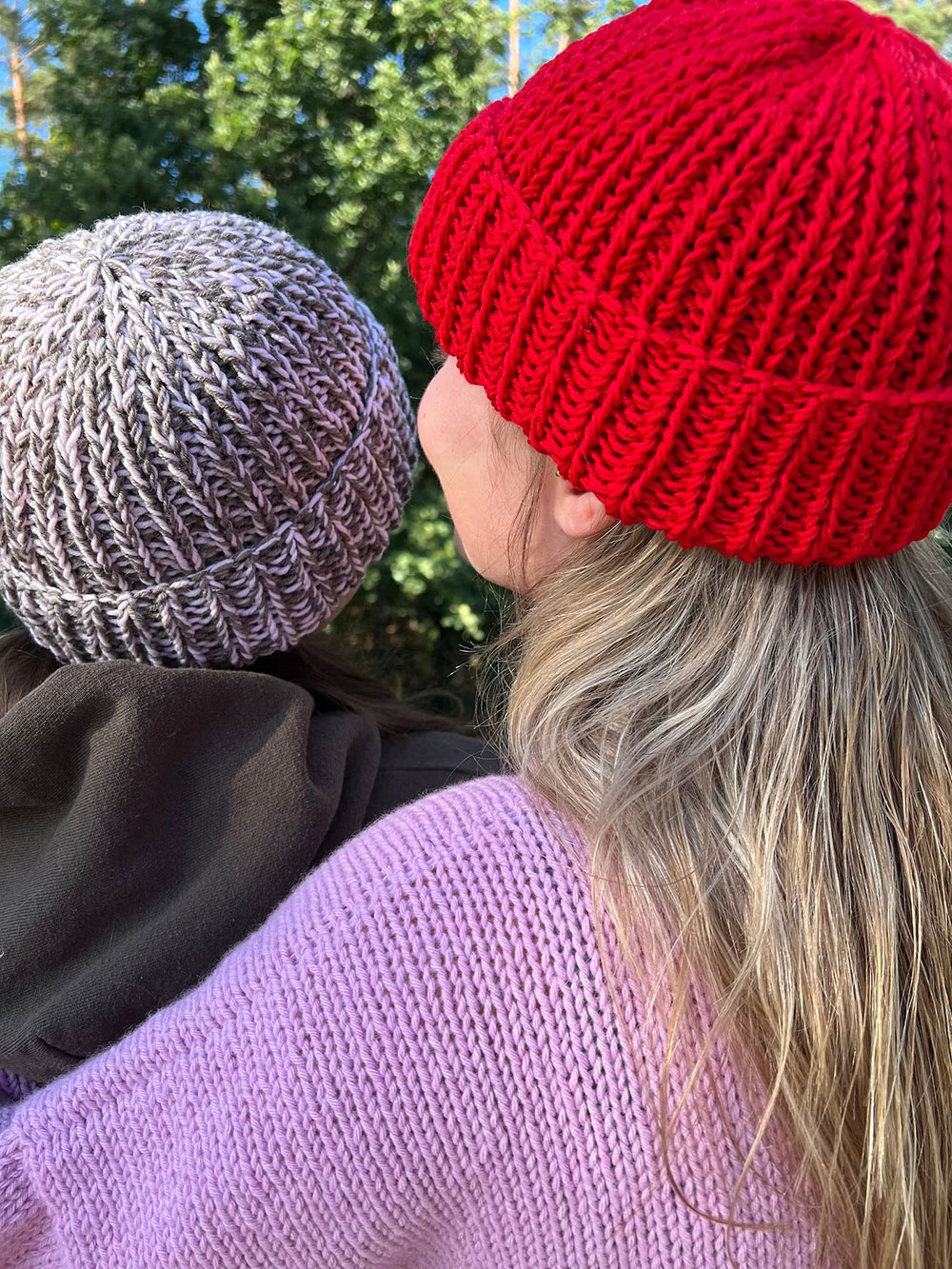 The MATS knitted hat made from merino wool is a cozy classic: ONESIZE and UNISEX It has a turn-up and IS knitted from the bottom up. The instructions are beginner-friendly. // Language: ENGLISH // Techniques used: – knit and purl stitches – decreases // LEVEL OF DIFFICULTY: LEVEL 1/5 beginner // SIZE: ONE SIZE // Fabric: 100 g Cool Wool Big by Lana Grossa (50 g = 120 m), DOUBLE THREAD // Needles: 7 mm circular needles (40 cm) // Stitch gauge: 18 W x 17 W = 10 x 10 cm (1 purl, 1 knit) If necessary, choose a different needle size to adjust the stitch gauge. *These instructions are for private use only. It may not be edited or resold. Pieces knitted according to these instructions may not be sold.