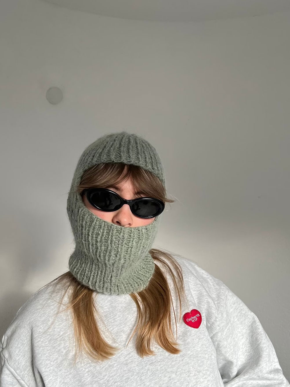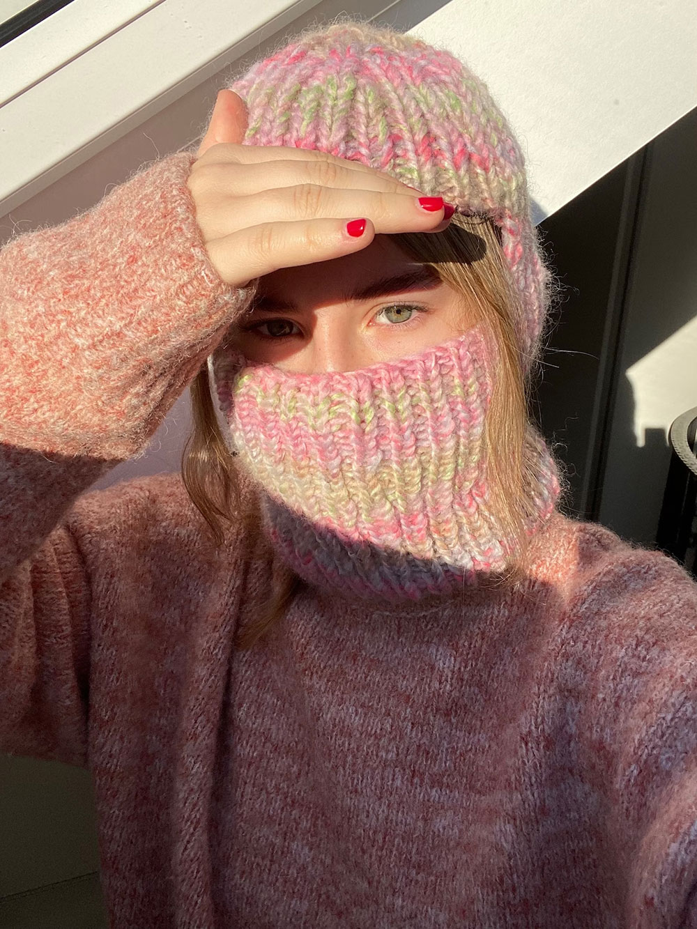 The super soft and stretchy balaclava is perfect for cold days and a great knitting project for beginners: ONE SIZE and UNISEX