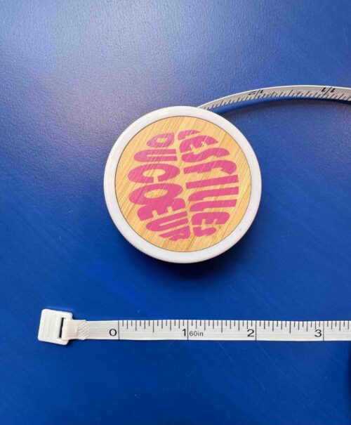 Bestickter Baumwollbeutel mit Reißverschluss in rosa mit braunem Stick „Hot People Knit“ und „LESFILLESDUCOEUR“ Schriftzug auf der Rückseite – perfekt um kleinere Strickprojekte wie Mützen oder Scarfs aufzubewahren.