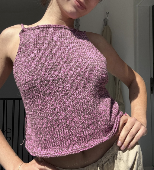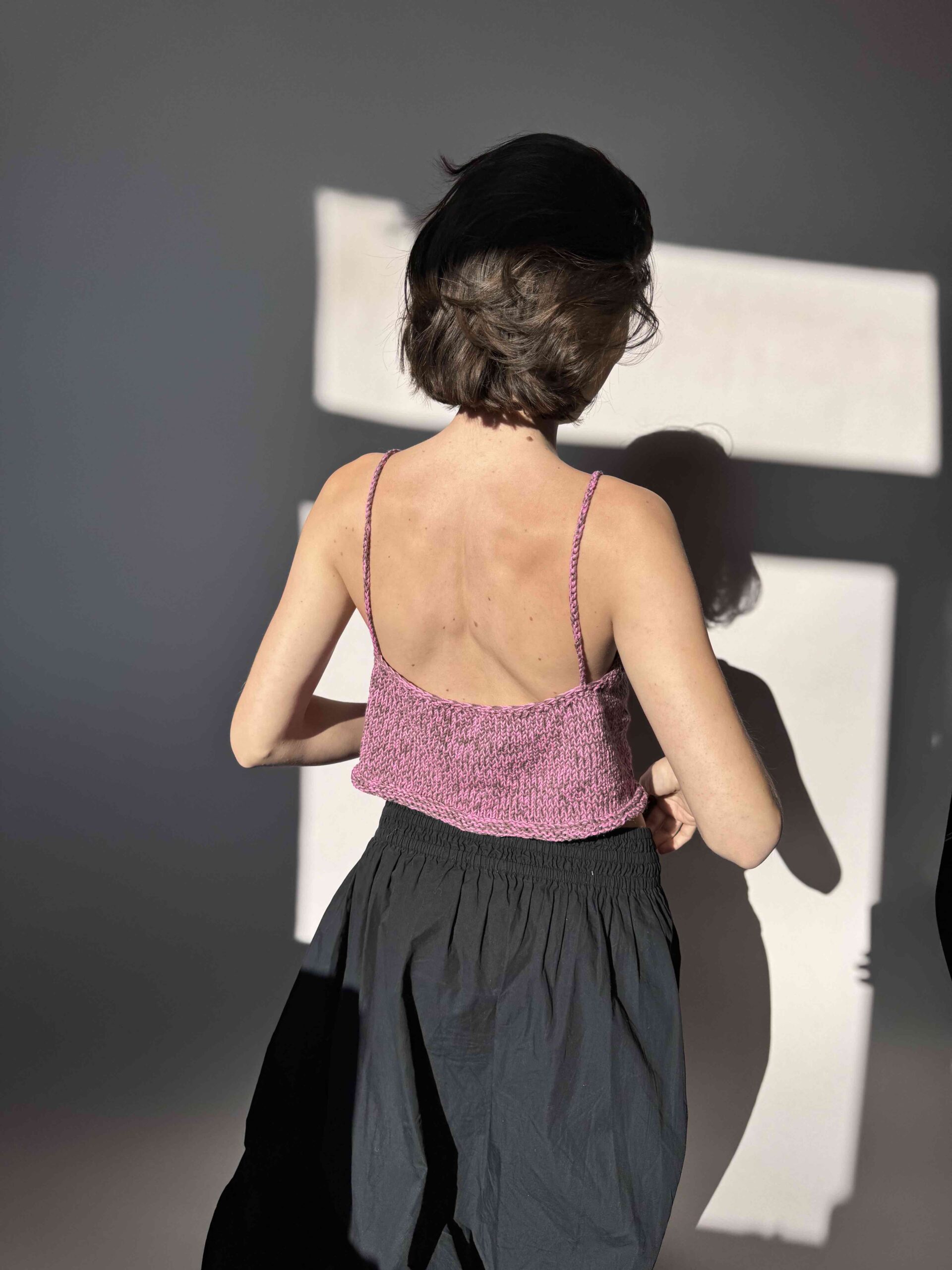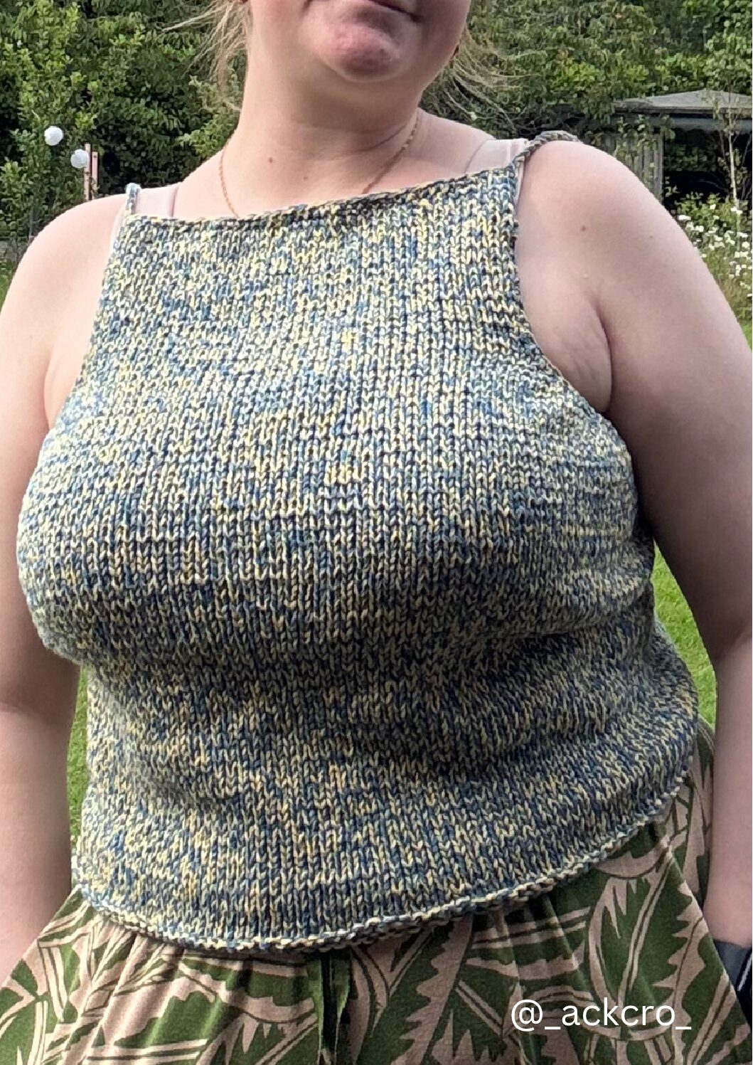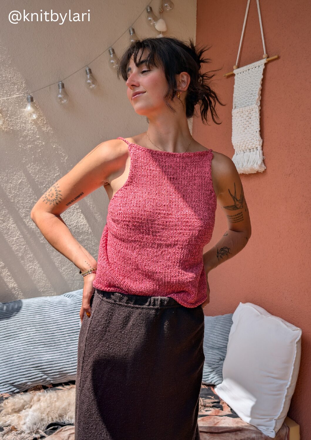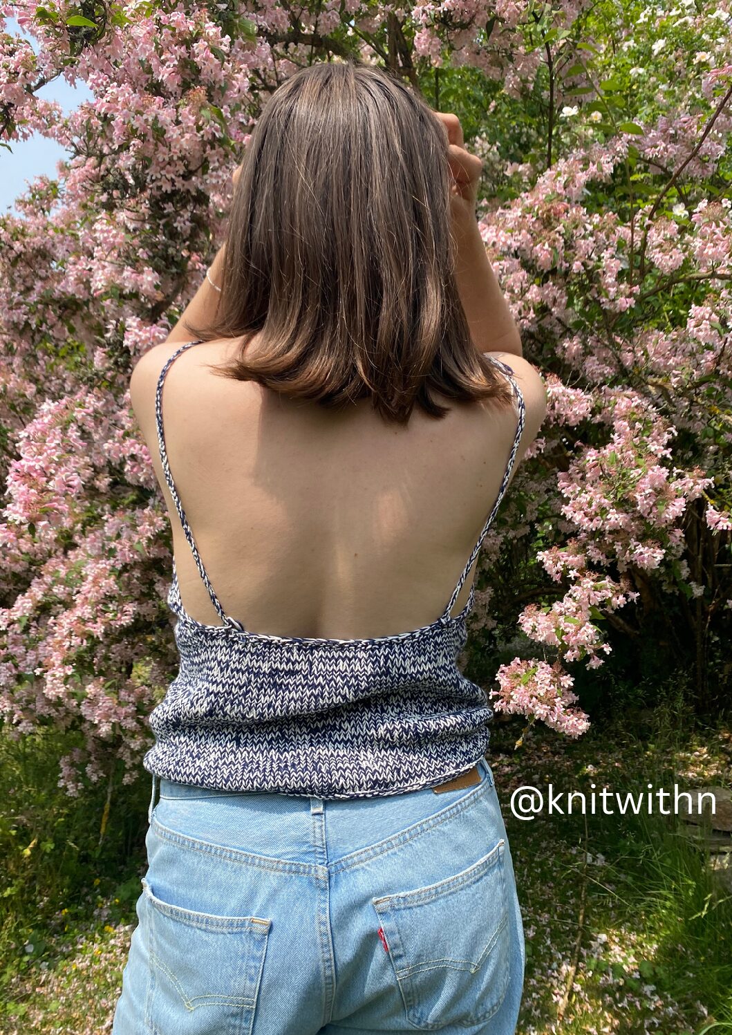 Das schnellste Sommer Top mit cutem Rückenausschnitt: SORBET TOP – es wird von oben nach unten mit doppeltem Faden gestrickt und die Ränder werden ganz zum Schluss umhäkelt